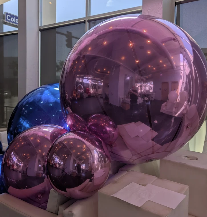 Giant Inflatable Mirror Ball Sealed Disco Inflatable Mirror Sphere Red PVC Chrome Shinny Balloon For Wedding Stage Decoration.